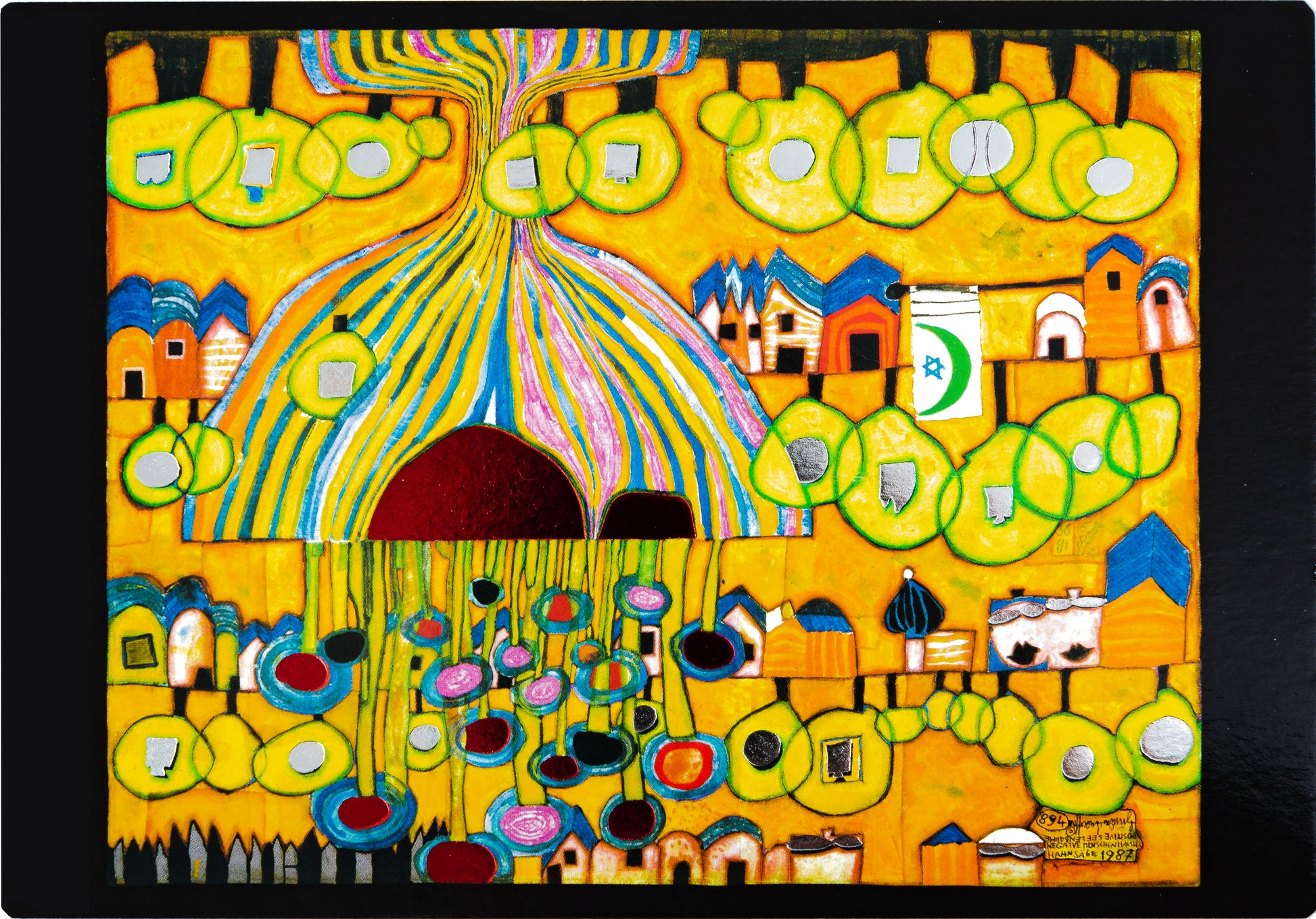 Todas las impresiones Hundertwasser destacan por su vanguardista diseño, colorido y esplendidas folias metálicas.